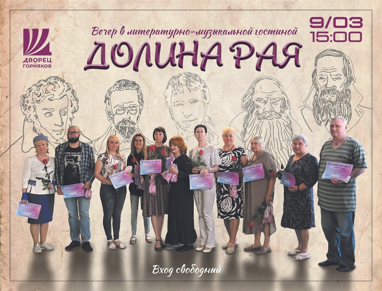 Уважаемые дамы, дорогие гости и жители нашего города! Мы приглашаем вас на мероприятие, посвященное Международному женскому дню, которое приготовили участники Литературно-музыкальной гостиной «Долина рая».