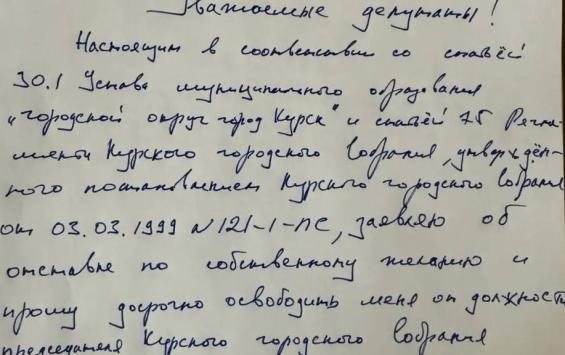 Председатель Курского городского Собрания Владимир Токарев подал заявление об отставке. Об этом сообщил губернатор Курской области Александр Хинштейн.