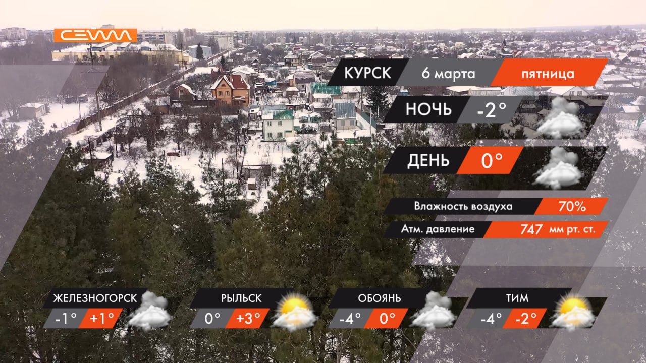 Завтра, 6 марта, в Курске будет облачно с прояснениями. Ночью небольшой снег, днём без существенных осадков. На дорогах гололедица.
