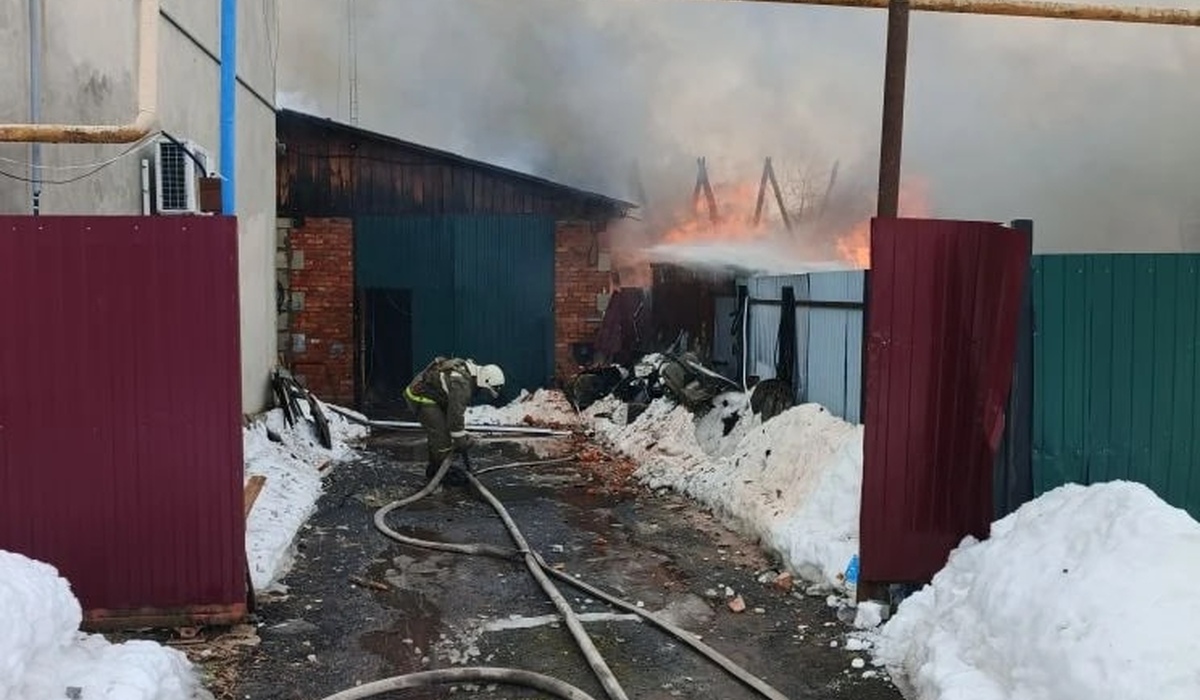 В поселке Хомутовка Курской области на улице Память Ильича 5 марта произошел серьезный пожар. Там горели жилой дом, сарай и гараж.