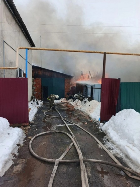 Открытым пламенем горели деревянные дом и сарай, а также кирпичный гараж. На тушение было подано три ствола.