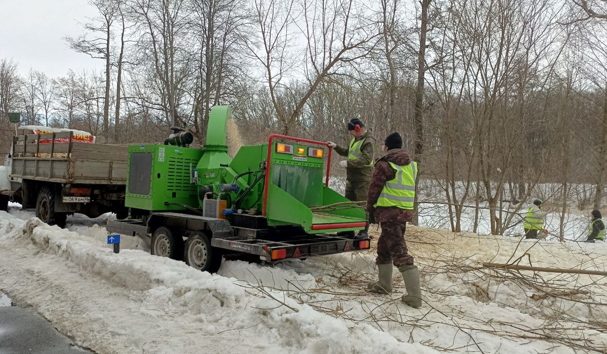 Работы проводит Лесопожарный центр на площади 0,4 гектара. Сотрудники используют специальную дробилку для переработки спиленных стволов в щепу. Экологичный метод позволяет использовать отходы как удобрение для почвы и сохраняет эстетичный вид площадки вместо вывоза мусора на свалку.