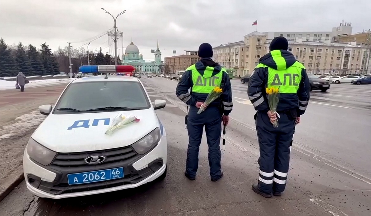 В Курске сотрудники Госавтоинспекции вручали цветы женщинам-водителям.