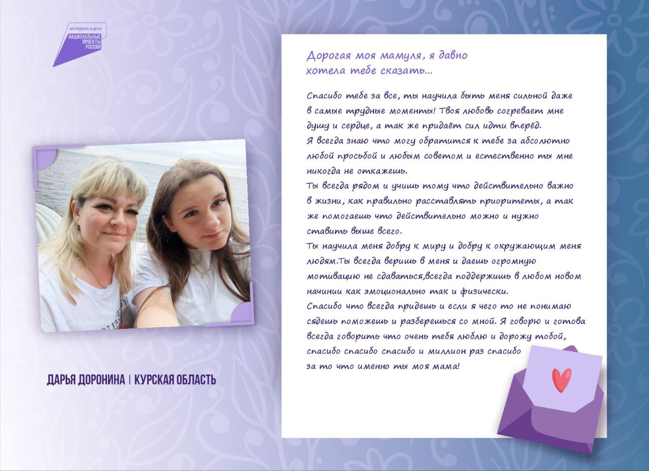 К Международному женскому дню участники нацпроекта «Молодёжь и дети» Курской области написали письма своим мамам.