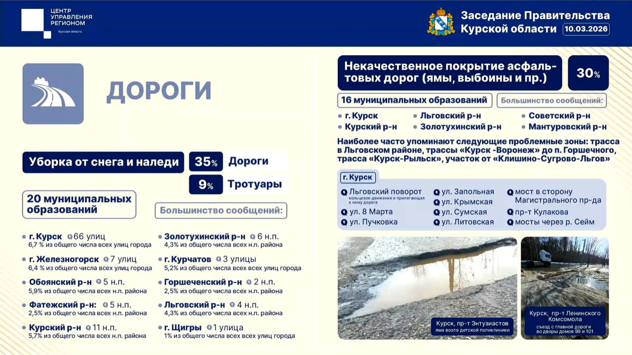 Министр транспорта и автомобильных дорог Курской области Александр Замараев отметил, что работа по проблемным адресам уже начата: