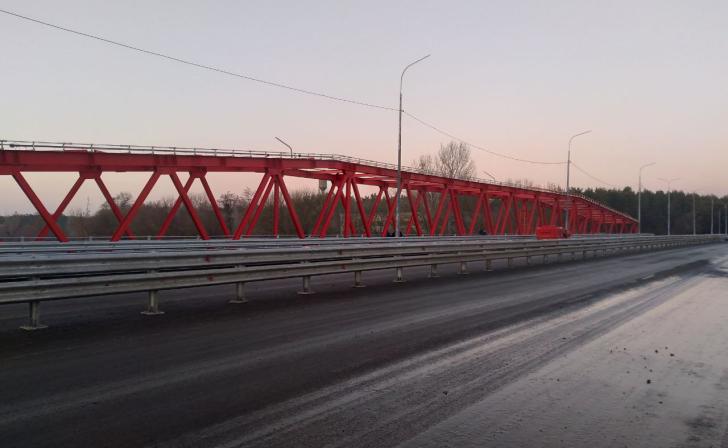 Работы возобновились после технологического перерыва. Сейчас идет возведение мостового сооружения: завершаются армирование, устройство опалубки и монолитных участков, ведётся бетонирование межбалочных швов и элементов автодорожного моста. Степень готовности - 80%.