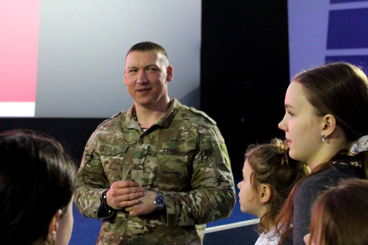 Доброволец разведроты бригады «БАРС-Курск» с позывным «Тайга» встретился с молодёжью, чтобы побеседовать на значимую тему: как не стать жертвой или пособником терроризма.