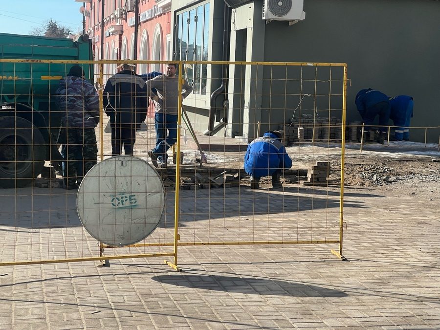 Коммунальщики ведут ремонт на улице Ленина в Курске. Там устраняют разрытия на теплосетях, простоявшие открытыми всю зиму.