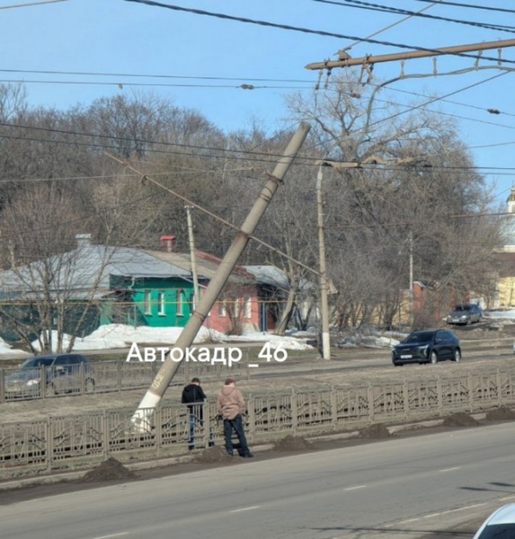 По предварительным данным курян, которые выложили фото с места в паблике «Автокадр_46», на улице Энгельса может рухнуть наклонившаяся бетонная опора трамвайной линии возле проезжей части.