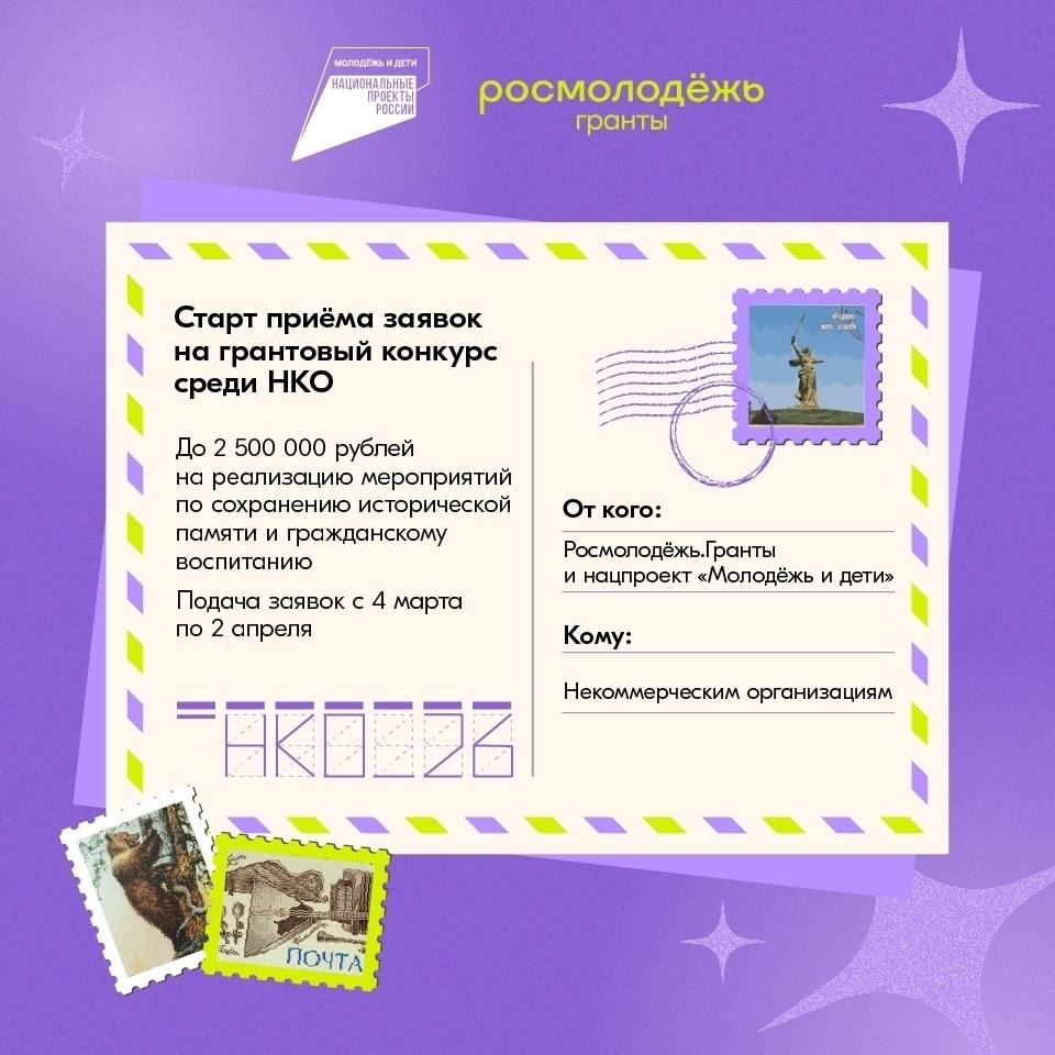 Стартовал грантовый конкурс «Росмолодежь.Гранты» среди некоммерческих организаций на реализацию проектов по сохранению исторической памяти и гражданскому воспитанию молодежи.