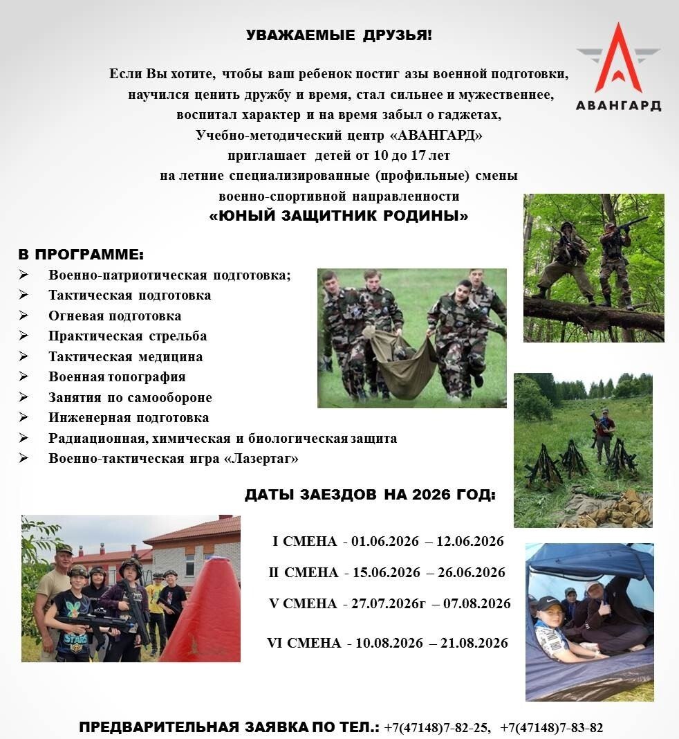 Приглашаем железногорских мальчишек и девчонок принять участие в летней специализированной смене военно-спортивной направленности «Юный защитник Родины», организованной областным бюджетным учреждением Учебно-методическим центром военно-патриотического воспитания и подготовки к военной службе молодежи «Авангард».