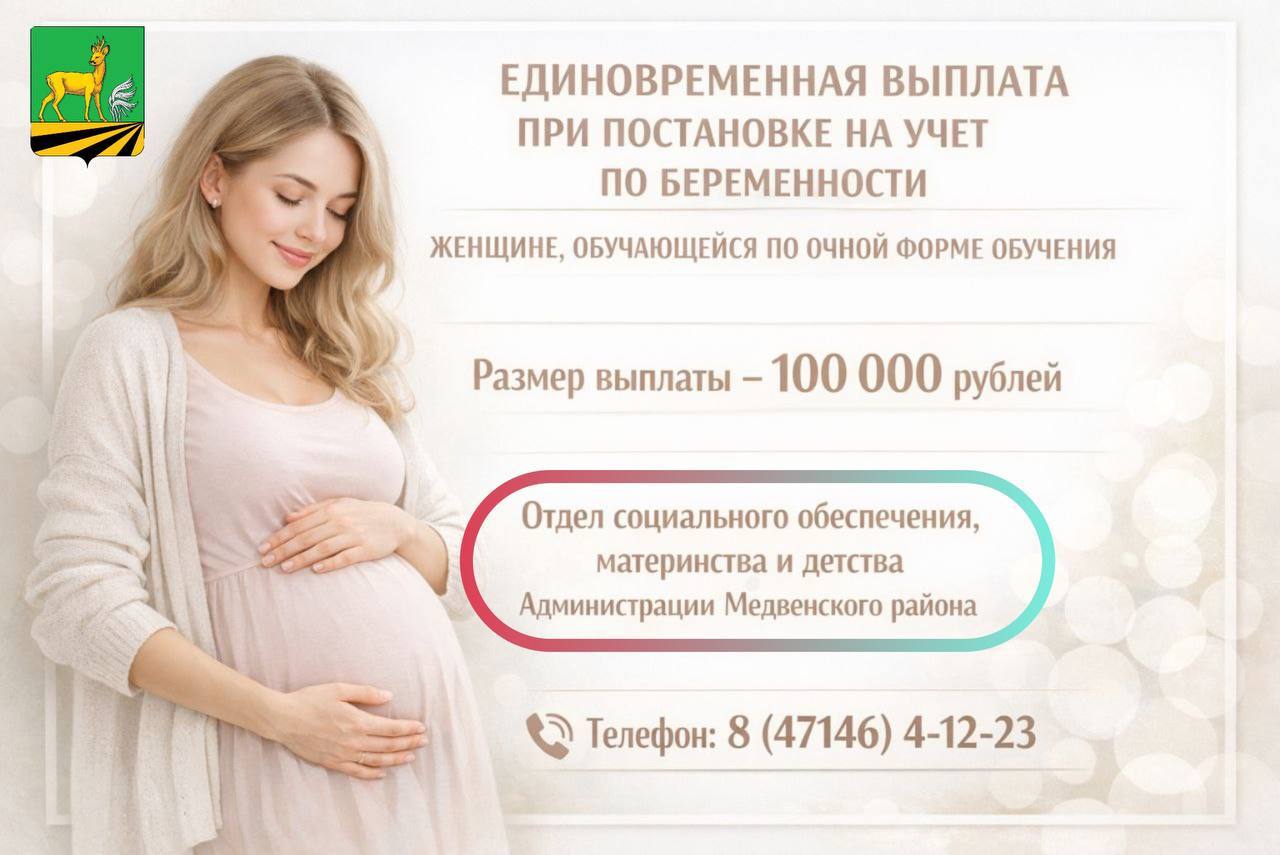 Единовременная выплата предоставляется беременной женщине, имеющей гражданство Российской Федерации, постоянно проживающей на территории Курской области, обучающейся по очной форме обучения в образовательной организации, осуществляющей образовательную деятельность на территории Курской области или на территории областей, граничащих с Курской областью ( за исключением организации дополнительного образования), поставленной на учет по беременности в медицинской организации, расположенной на территории Курской области, с 1 января 2025 года;