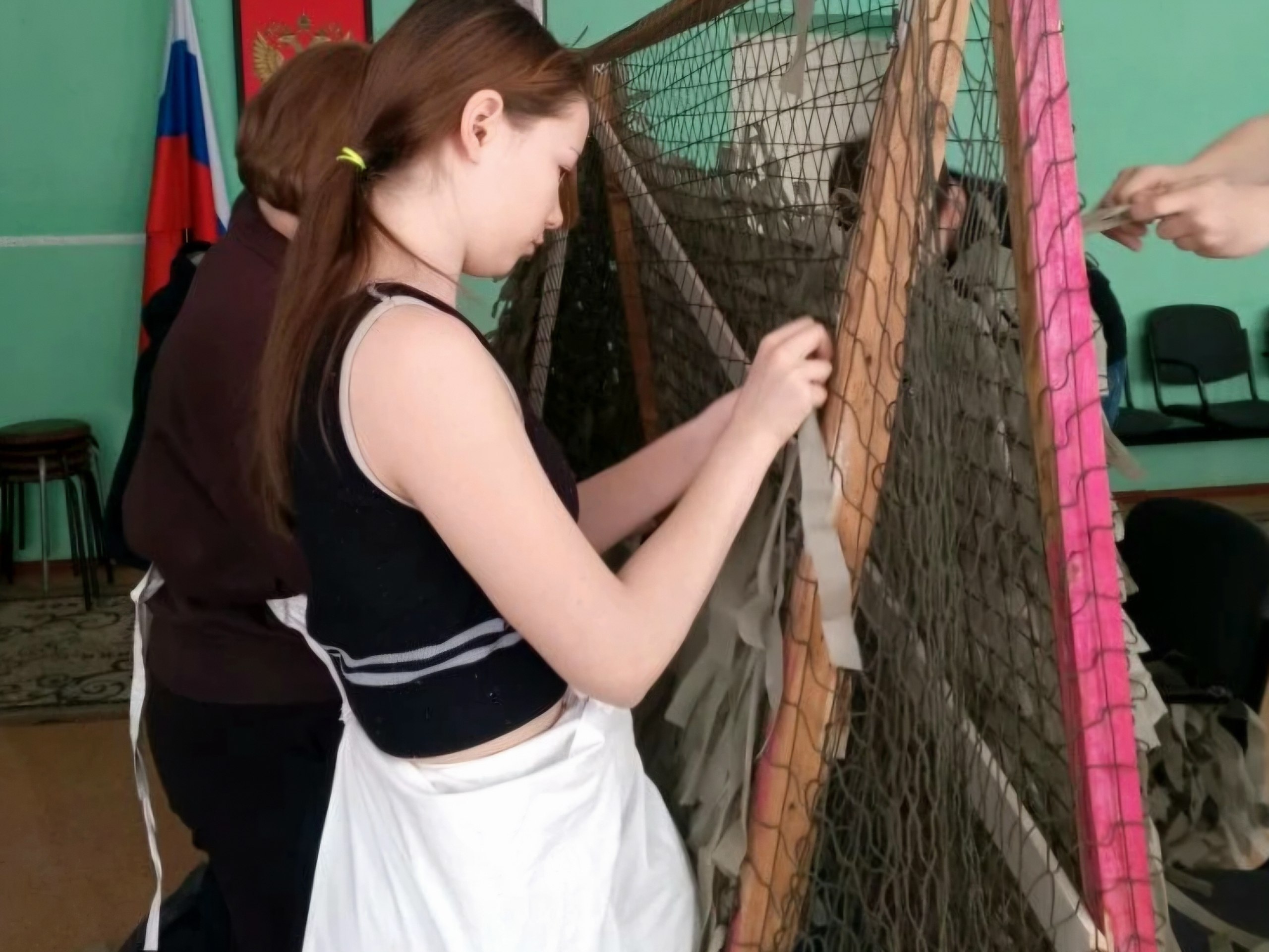 Воспитанники ОКОУ "Верхнелюбажская школа-интернат" вместе с педагогами продолжают плести маскировочные сети для участников СВО.