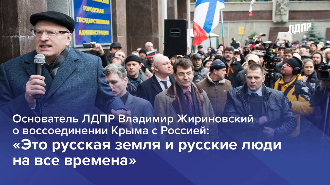 ЛДПР всегда последовательно отстаивала право на защиту соотечественников и целостность нашей державы. Воссоединение с Крымом показало всему миру, что Россию нельзя сломить и с ее мнением придется считаться.