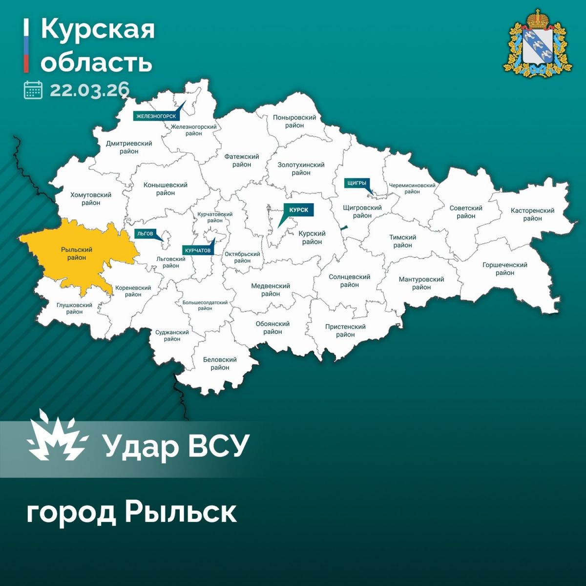 ВСУ в очередной раз атаковали приграничный город Рыльск, рассказал губернатор Курской области Александр Хинштейн.