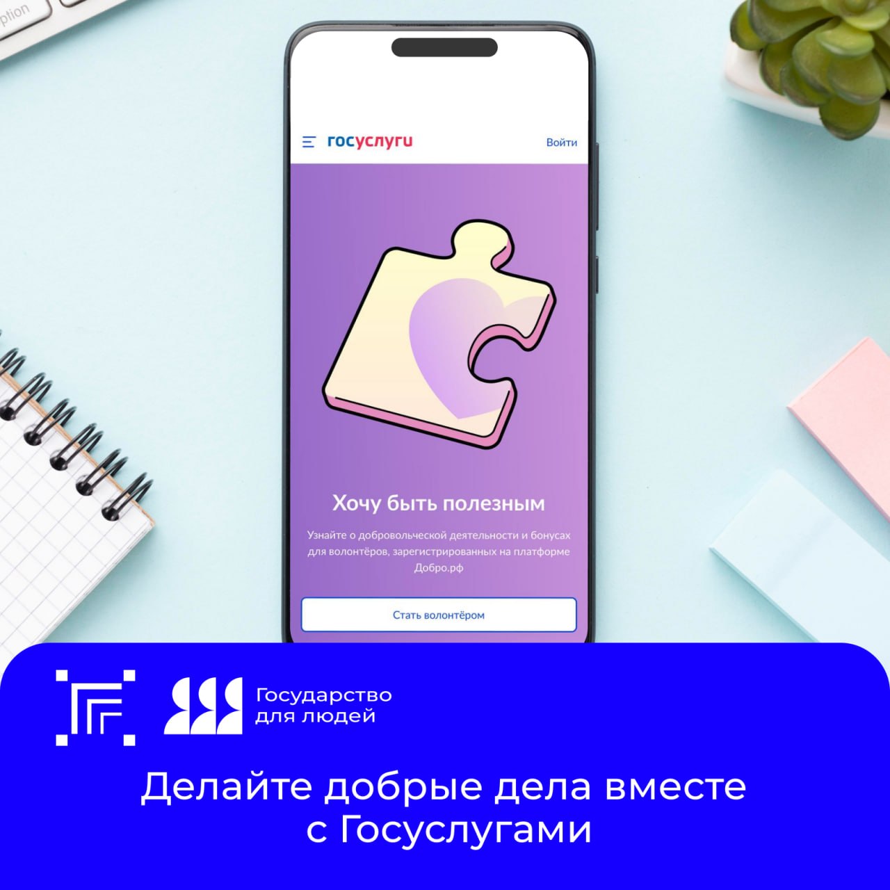 Волонтёрская деятельность входит в комплекс сервисов по «жизненным ситуациям», которые запускаются на Госуслугах в рамках федерального проекта «Государство для людей».
