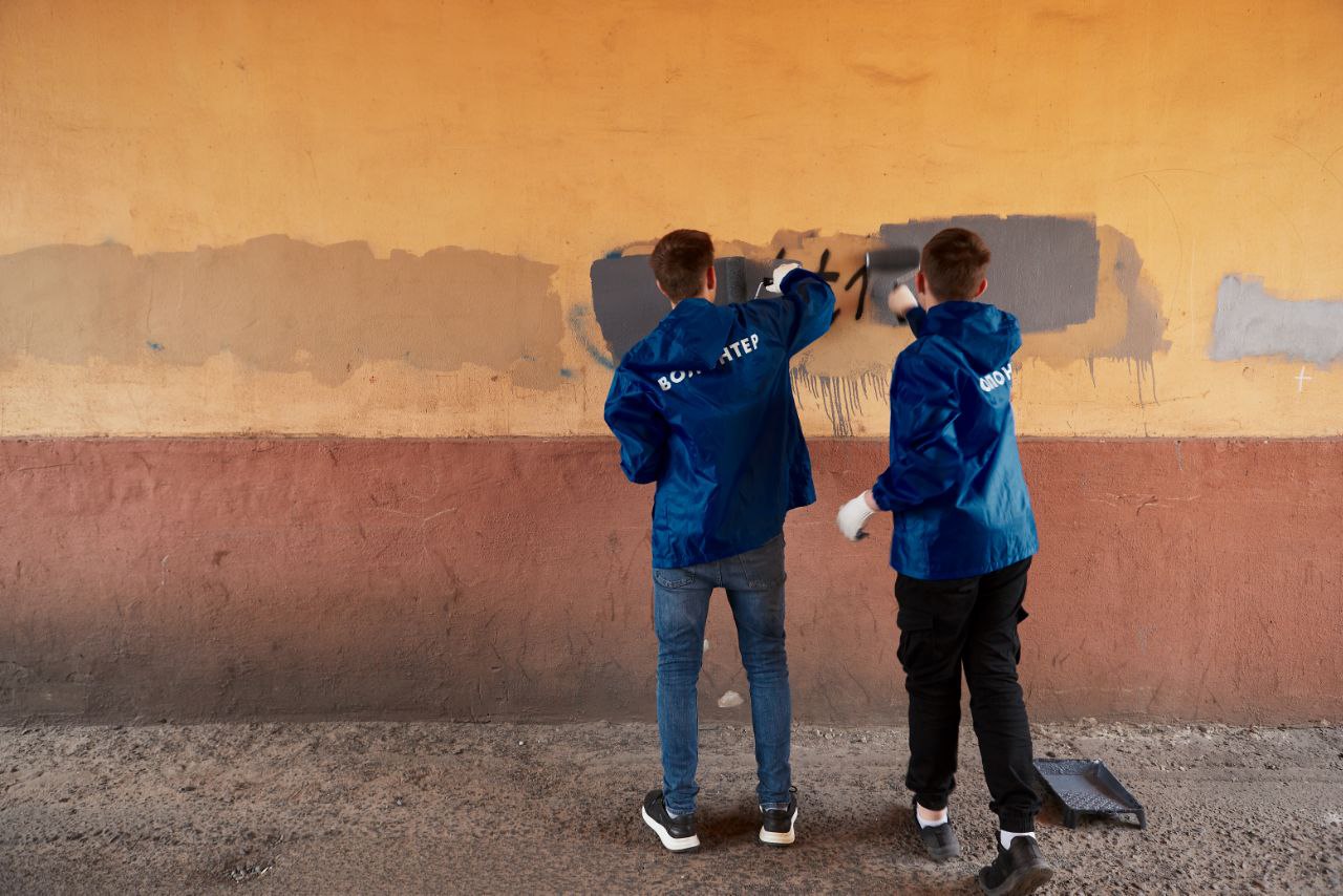 В рамках проекта «Чистый город» куряне ликвидировали 177 надписей по Хуторской улице.