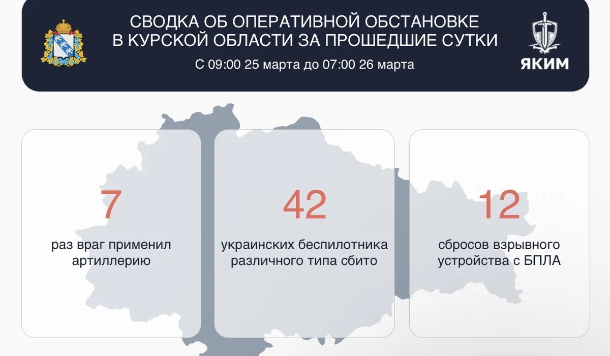 В Курской области за минувшие сутки сбили 42 беспилотника ВСУ.
