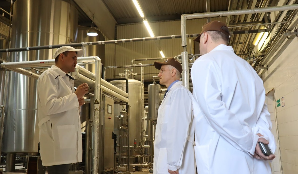 И.о. губернатора Курской области Александр Чепик посетил пивоваренное предприятие. Завод выпускает более 57 сортов пива и безалкогольных напитков, а также производит снековую продукцию: орехи, сухари и гренки.