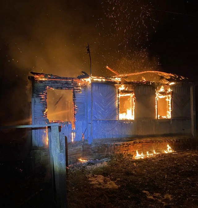Дом горел открытым пламенем, обрушилась крыша по всей площади. Людей в доме не было, как и угрозы распространения на другие дома и строения.