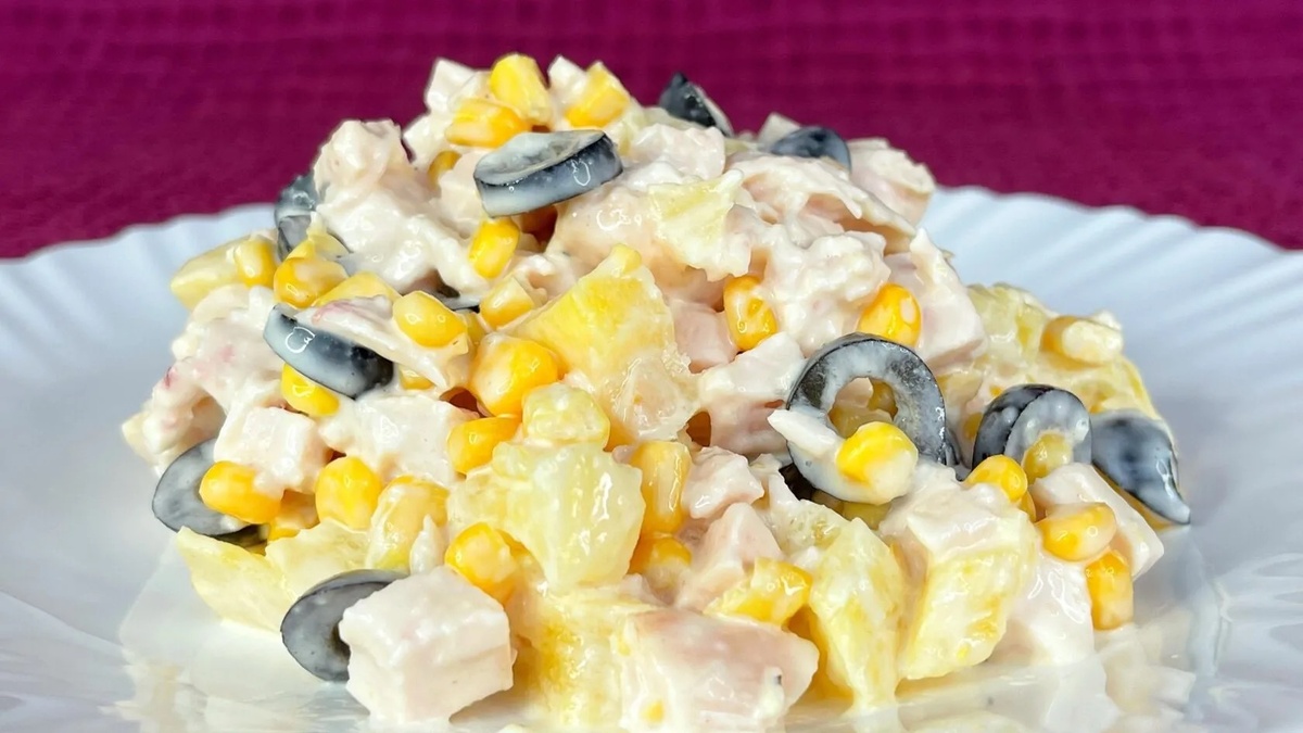 Этот салат стал известен как «ленивый оливье», но его вкусовые качества с лихвой компенсируют простоту.