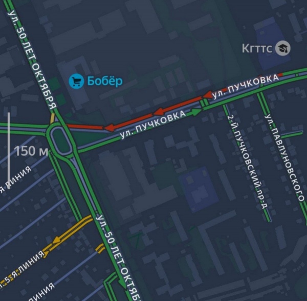 В связи с аварией на перекрестке улиц 50 лет Октября и Пучковка затруднено движение по улице Пучковка в направлении Северо-Западного района.