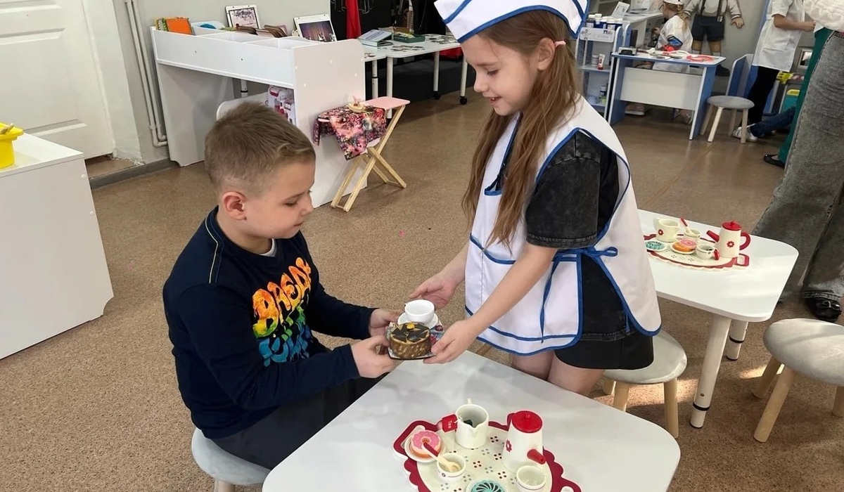 Юные участники создавали декорации, ухаживали за растениями и подбирали наряды. Они возводили стены, накрывали столы и угощали посетителей кафе. Также дети лечили пациентов и искали клад. Все занятия проходили как у взрослых, но только в формате игры.
