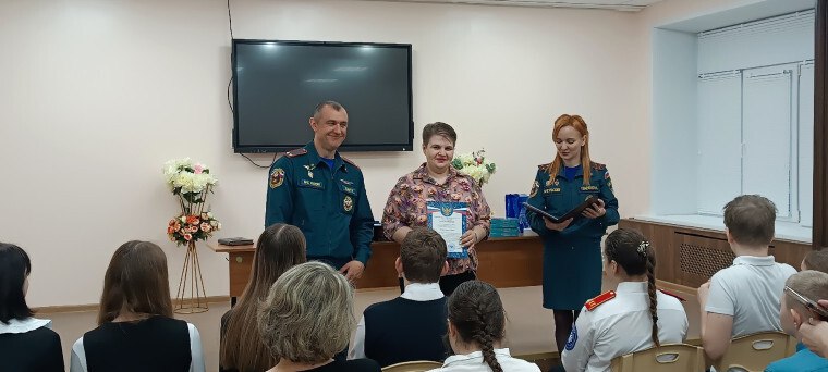 27 марта в школе№5 прошло награждение участников конкурса. Инспектор ГПП СПСЧ № 3 СО №3 Управления Гладченко Жанна Александровна и заместитель начальника отдела-начальник отделения профилактики пожаров Ильин Роман Викторович в торжественной обстановке вручили дипломы и памятные подарки всем обучающимся общеобразовательных учреждений г. Курчатова, которые приняли активное участие в данном конкурсе.