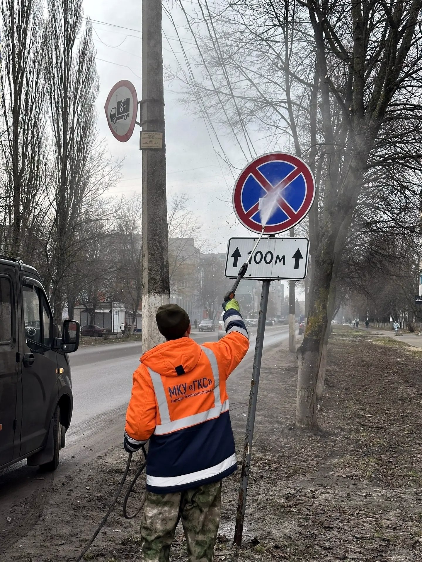 С 29 марта работники дорожной службы МКУ «ГКС» приступили к мойке дорожных знаков и ограждений после зимнего сезона.