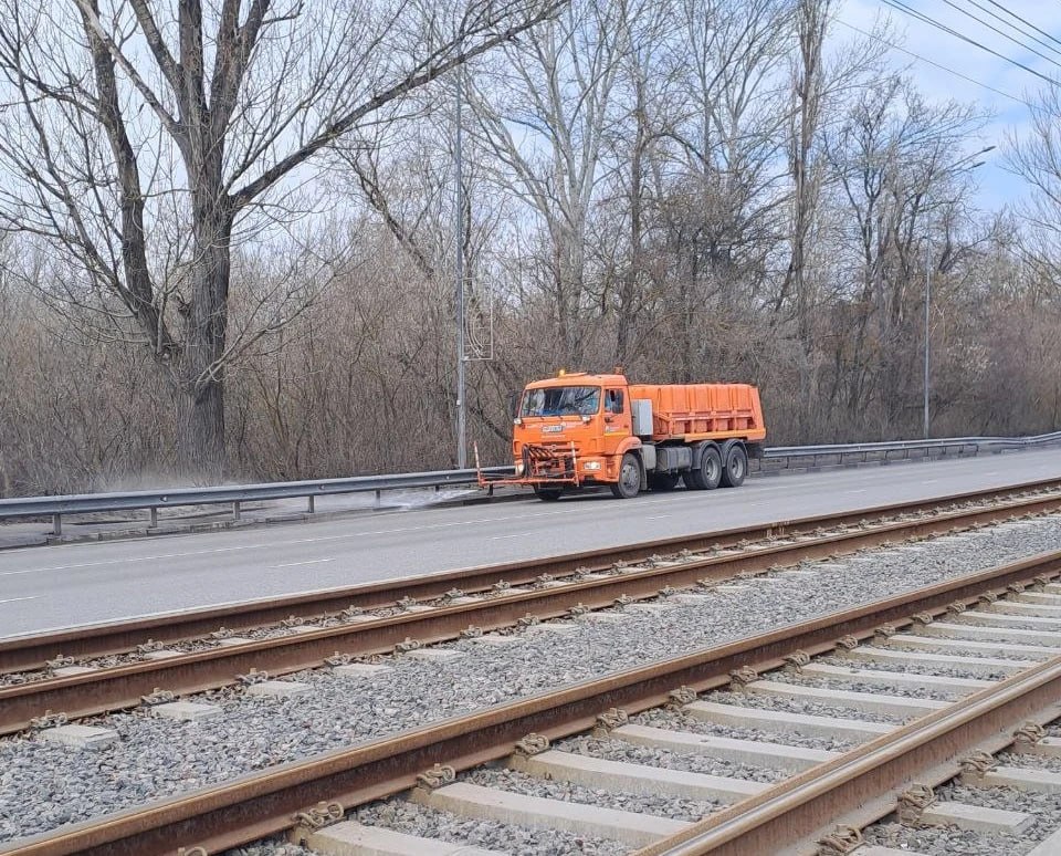 По информации комитета ЖКХ, подрядчики очищают проезжую часть от песка, пыли и грязи и моют асфальт. В работе задействовано 75 специалистов и 58 единиц техники.