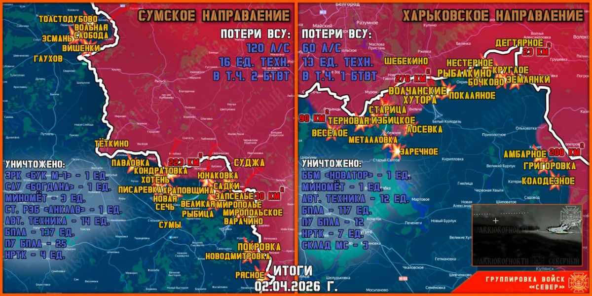 К утру 3 апреля группировка войск «Север» раскрыла новые подробности формирования полосы безопасности в Харьковской и Сумской областях Украины, в том числе на подступах к госгранице с Курской областью Российской Федерации.