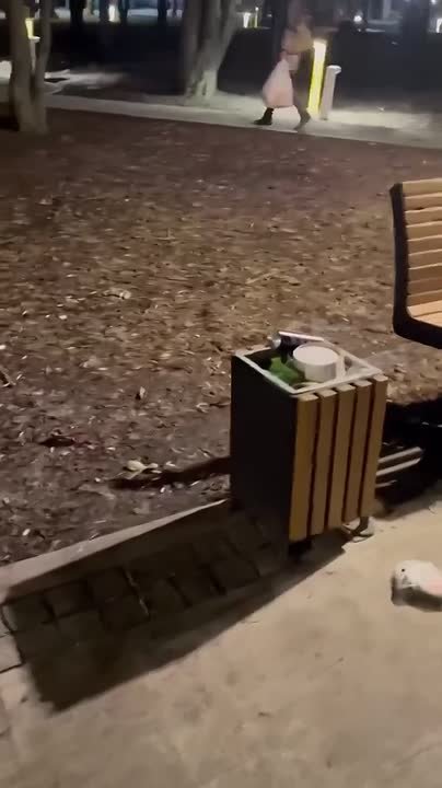 Парк Пионеров: все мусорные контейнеры чистые, один уже наполнился — его обязательно уберут завтра утром.