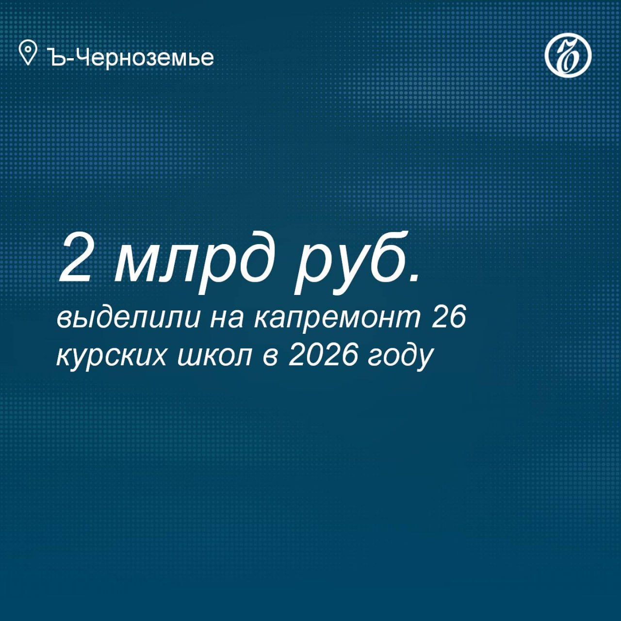 В 2026 году на капитальный ремонт 26 школ в Курской области было выделено около 2 млрд руб. Об этом сообщил губернатор Александр Хинштейн на заседании облправительства. При этом 1,6 млрд руб. от этой суммы составили средства из федерального бюджета, а оставшуюся часть — средства облбюджета.