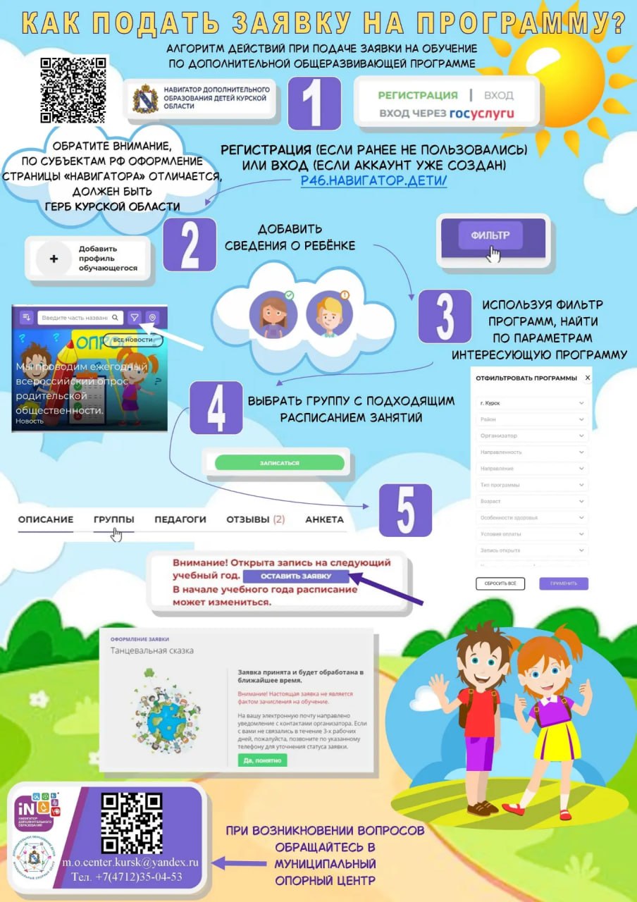 Местный центр поддержки дополнительного образования детей Курска подготовил наглядный порядок действий «Как оставить заявку на программу?».