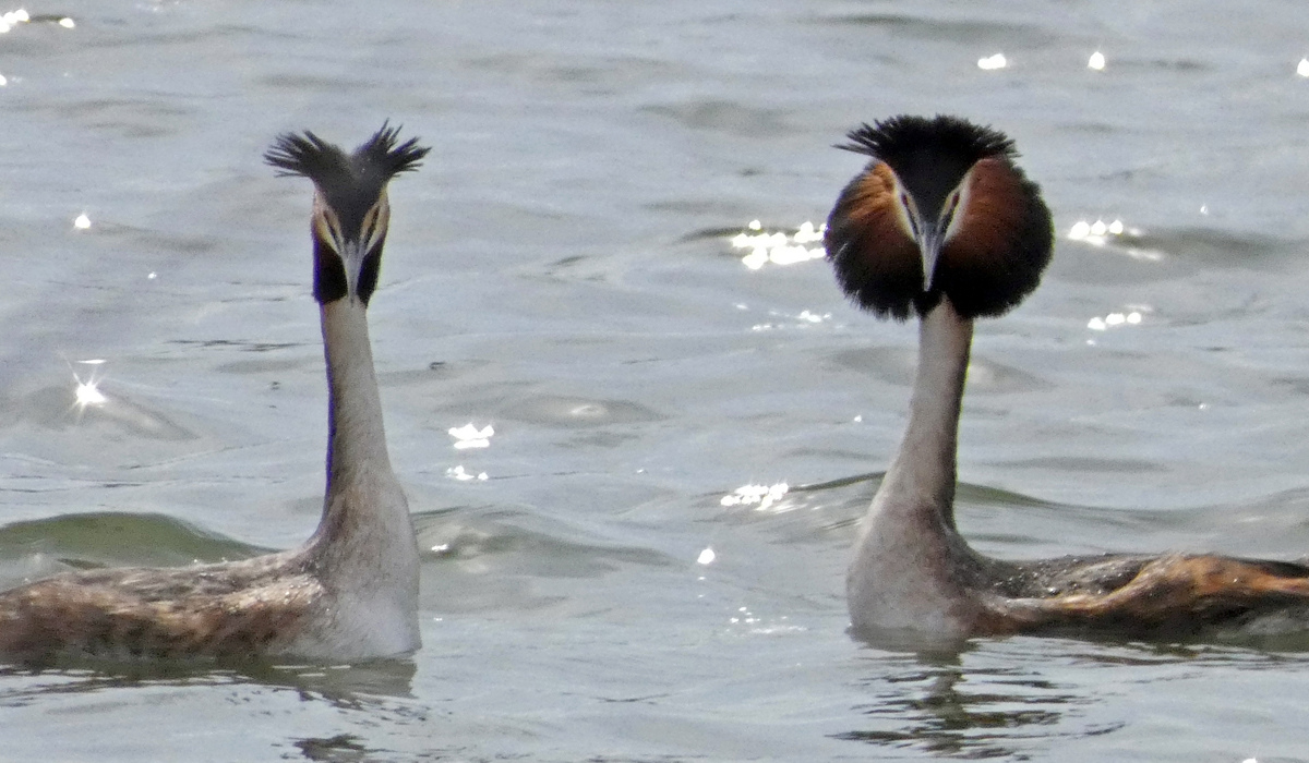 На курских водоёмах орнитолог-любитель Павел Кудрин запечатлел танцующие пары чомг в брачном наряде.