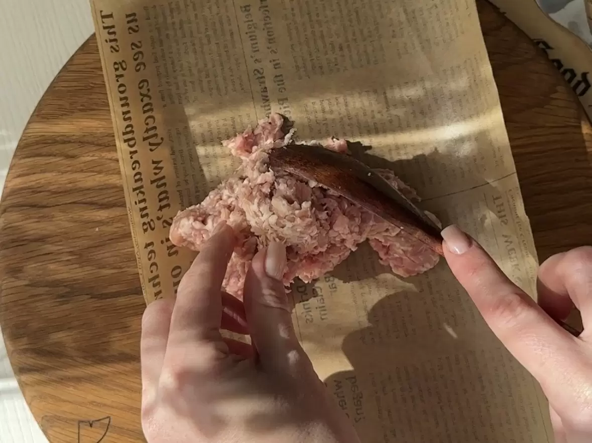 Первым делом на противень укладывают лист пергамента и распределяют фарш в виде большой лепёшки средней толщины — аналогично классическим котлетам. Затем этот «блин» делится на две части. На одной половине располагается начинка: ложка творожного сыра для сочности, ломтики томатов и кусочки моцареллы. Сверху аккуратно накрывают второй половиной фарша, создавая что-то вроде большого котлета с сюрпризом. По желанию, на верхней части можно дополнительно посыпать сыром для создания румяной корочки.