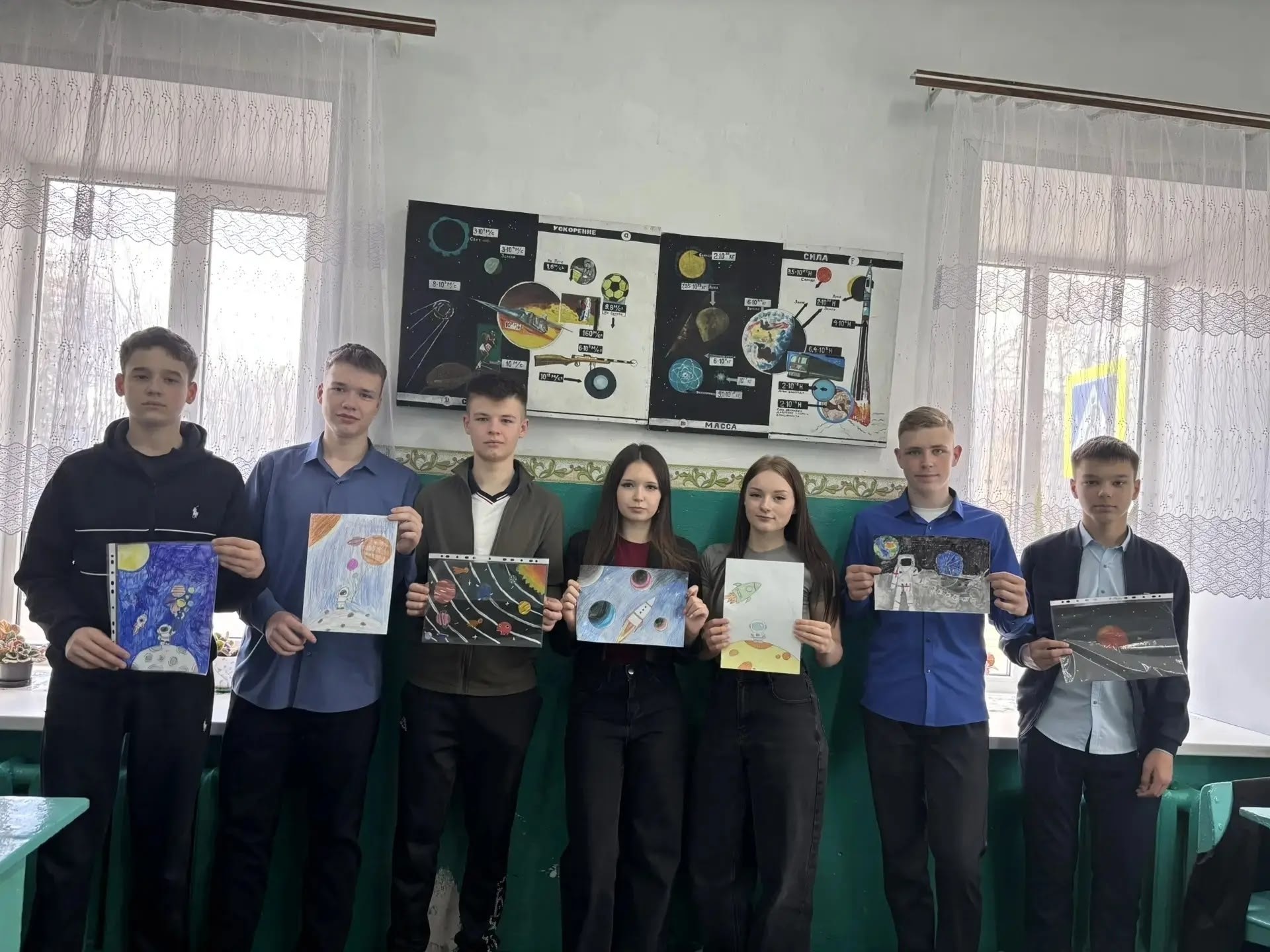 Ко Дню космонавтики учащиеся 8 классов (классные руководители Елена Алексеевна Шуклина, Елена Николаевна Бильдина) Фатежской школы № 1, нарисовали рисунки на тему "Космос- моя мечта". Для человечества космос всегда оставался несбыточной мечтой. Наверное каждый человек мечтает побывать в космосе, ощутить необъятность и величие Вселенной. 65 лет назад первый космонавт Юрий Гагарин доказал, что эта мечта может сбыться. Мальчишки и девчонки выразили свои мечты в замечательных рисунках.
