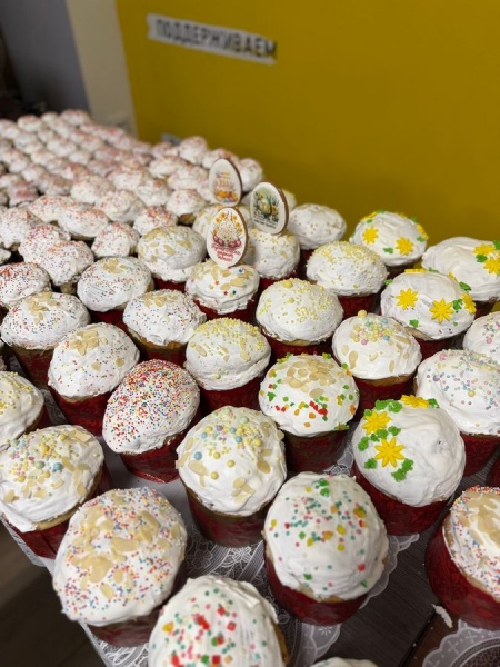В Курске волонтеры «Домика Добрых дел» испекли 650 пасхальных куличей. Угощение предназначено для бездомных и нуждающихся.