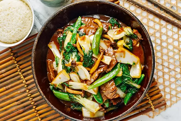 Говядина с овощами в густом соусе стала неотъемлемой частью повседневного рациона многих азиатских семей. Основная идея проста: нежные ломтики мяса, свежие овощи и яркий соус, которые дополнительно подчеркивают вкус блюда. Быстрая обжарка на сильном огне в ?овше или сковороде без крышки позволяет достичь идеальной текстуры. Главное — не терять темп и сохранять огонь на максимуме для насыщенного результата.