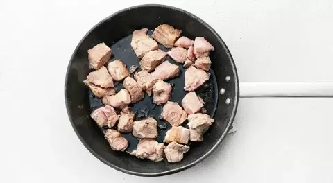 Первым шагом в приготовлении чахохбили является подготовка мяса. Свинину нарезают на средние кусочки, размером около 3х3 см. Разогревается сковорода с растительным маслом, где кусочки мяса обжариваются до золотистой корочки – это создаст невероятный вкус и текстуру. Обжаренное мясо переложить в отдельную миску и оставить в стороне.