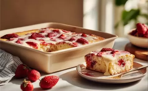Готовое тесто вылейте в форму для выпечки, а сверху щедро распределите ягоды — свежую клубнику или размороженные фрукты, по вашему выбору. Для заливки смешайте 180 граммов сметаны (желательно 20% жирности), одну столовую ложку сахара и одно яйцо. Получившуюся массу аккуратно полейте по всему пирогу. Важно не утапливать ягоды в тесте — они опустятся во время выпекания, оставив пирог легким и воздушным.