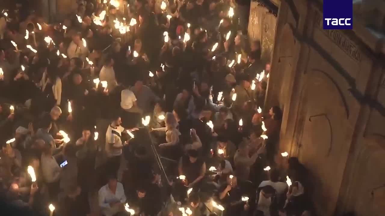 Благодатный огонь сошел в Храме Гроба Господня в Иерусалиме, сообщает ТАСС.