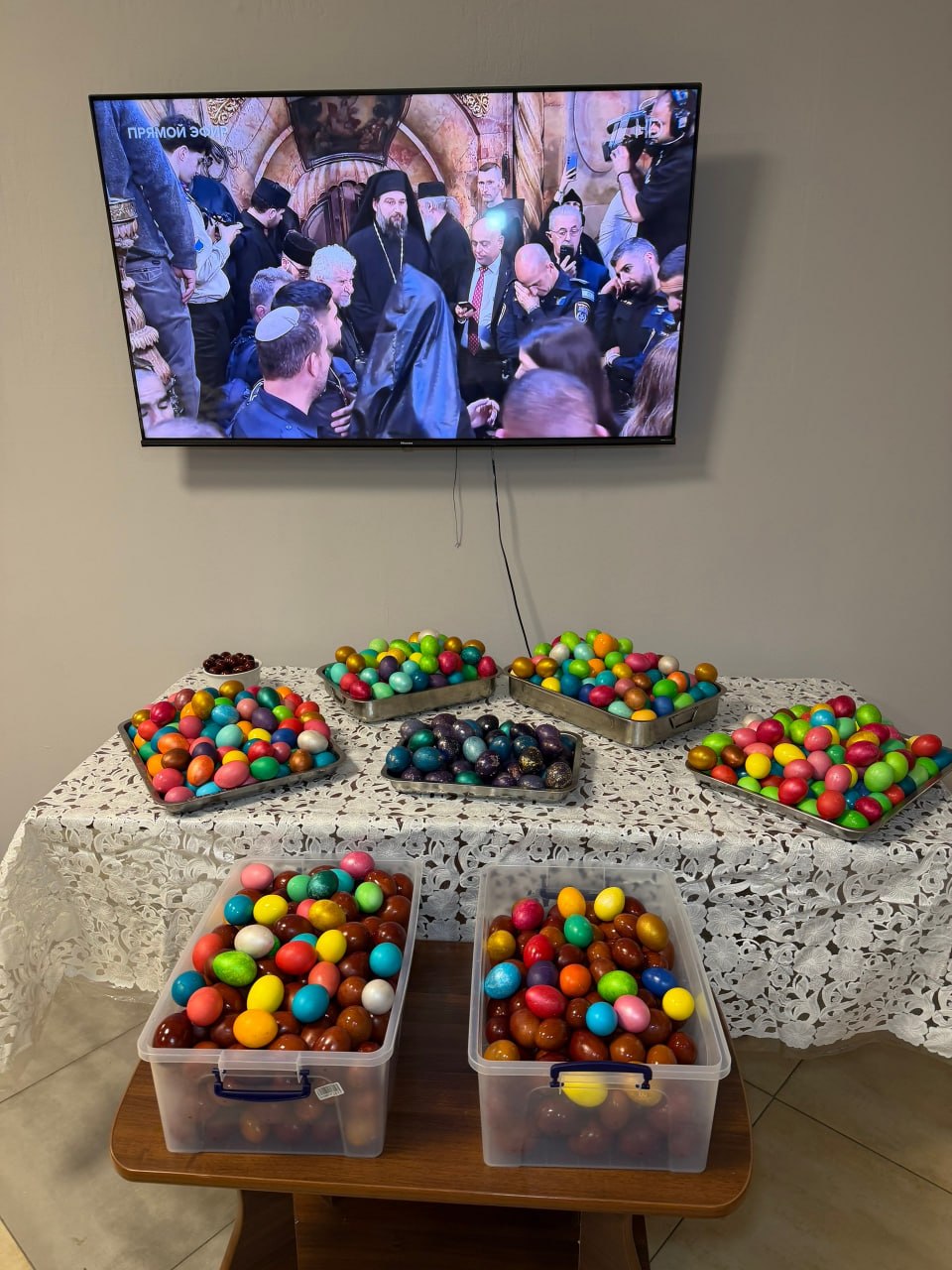 1000 окрашенных пасхальных яиц в одном фото. И это все волонтеры "Домика добрых дел".
