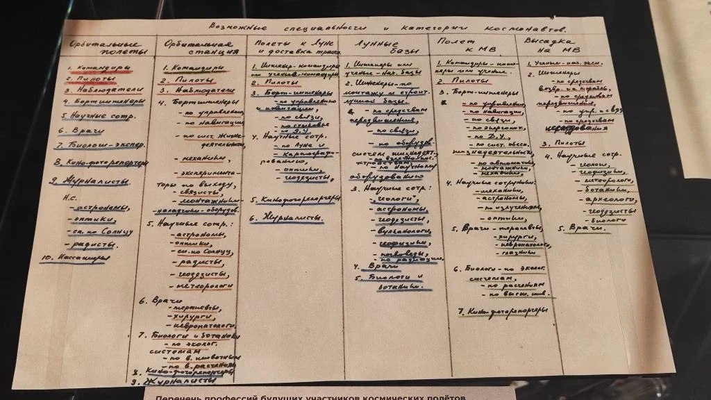 В этом был убеждён академик Сергей Королёв, и мы с легендарным конструктором космических кораблей полностью согласны! «Сейм» в космосе пока не был, а вот в Музее космонавтики в Москве мы заметили интересный документ. «Возможные специальности и категории космонавтов». Эта таблица составлена рукой Королёва. Здесь перечислены те, кого нужно брать в космос. Журналистов - и в полёты, и на орбитальную станцию! Кстати, если вы ещё не были в Музее космонавтики, обязательно загляните. Сухими цифрами про «более 100 тысяч единиц хранения» всё не описать, нужно видеть - от образцов ракетно-космической техники и реликвий до предметов декоративно-прикладного искусства. Целый космос на Земле.