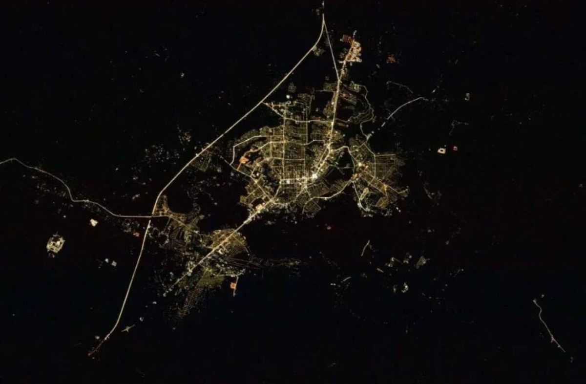 В паблике «Астрономия Курск» выложили снимок ночного Курска, сделанный с Международной космической станции.