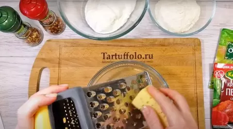 - 100 граммов сыра натирается на крупной терке.