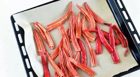 Первым шагом следует выбрать свежие перцы. Прежде чем приступить к готовке, их нужно промыть и просушить. Каждую плодовидную часть аккуратно разрезают вдоль, удаляя семена и плодоножки. Далее разделенные половинки перцев помещаются на противень, застеленный бумажными полотенцами, и оставляются в проветриваемом пространстве при температуре около 25°C на 3-4 дня. Этот этап важен для придания аджике необходимой текстуры и яркости вкуса.