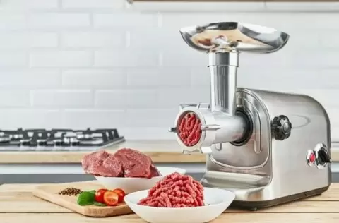 - Электрическая мясорубка: современный и удобный вариант, который значительно ускоряет процесс. Высокая производительность и минимальные усилия — главные ее преимущества. Она легко справляется даже с жесткими кусками мяса, но, к сожалению, требует больше пространства и может быть шумной.