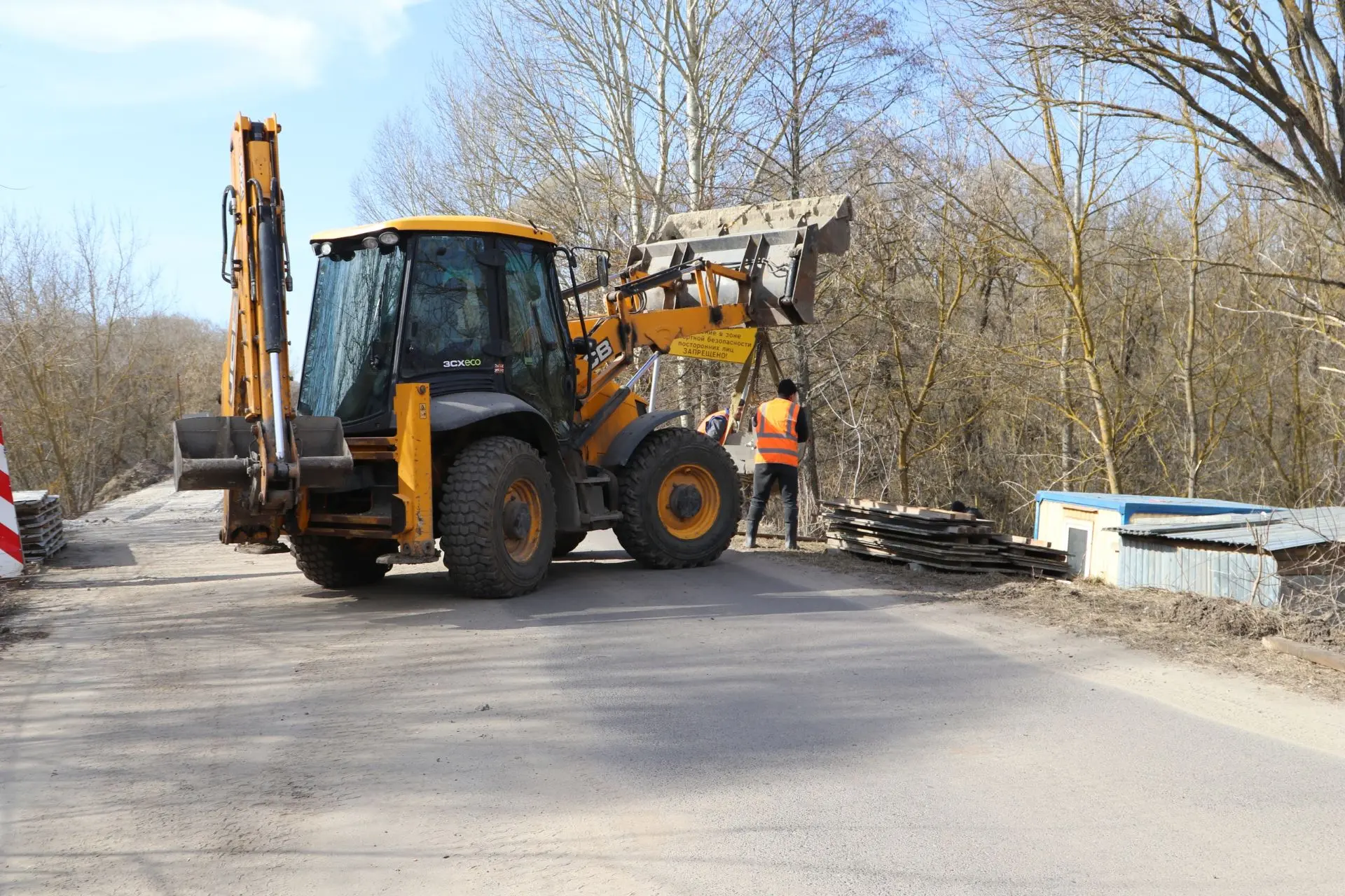 Подрядная организация приступила к демонтажу одной из частей мостового сооружения. Для организации безопасного дорожного движения по мосту установили временные дорожные знаки, светофоры и ограждения.