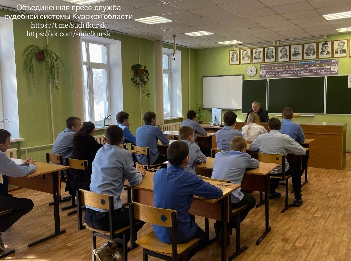 Председатель Фатежского районного суда Курской области Иван Попрядухин встретился с учащимися 7 и 9 классов ОКОУ «Bерхнелюбажская школа-интернат» Фатежского района Курской области.